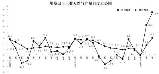 1-4月份,天然氣產量509.4億立方米,同比增長6.0%。進口2011萬噸[4],增長5.4%。