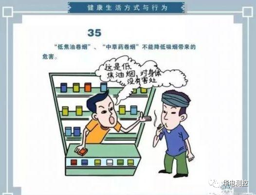提高人們的健康素養(yǎng),一方面要認(rèn)識(shí)吸煙及二手煙的危害相當(dāng)重要,同時(shí)還提示人們認(rèn)真研讀《中國(guó)公民健康素養(yǎng)—基本知識(shí)與技能》第二部分,關(guān)于“健康生活方式與行為”,包括第三十五條:“低焦油卷煙”、“中草藥卷煙”不能降低吸煙帶來的危害。