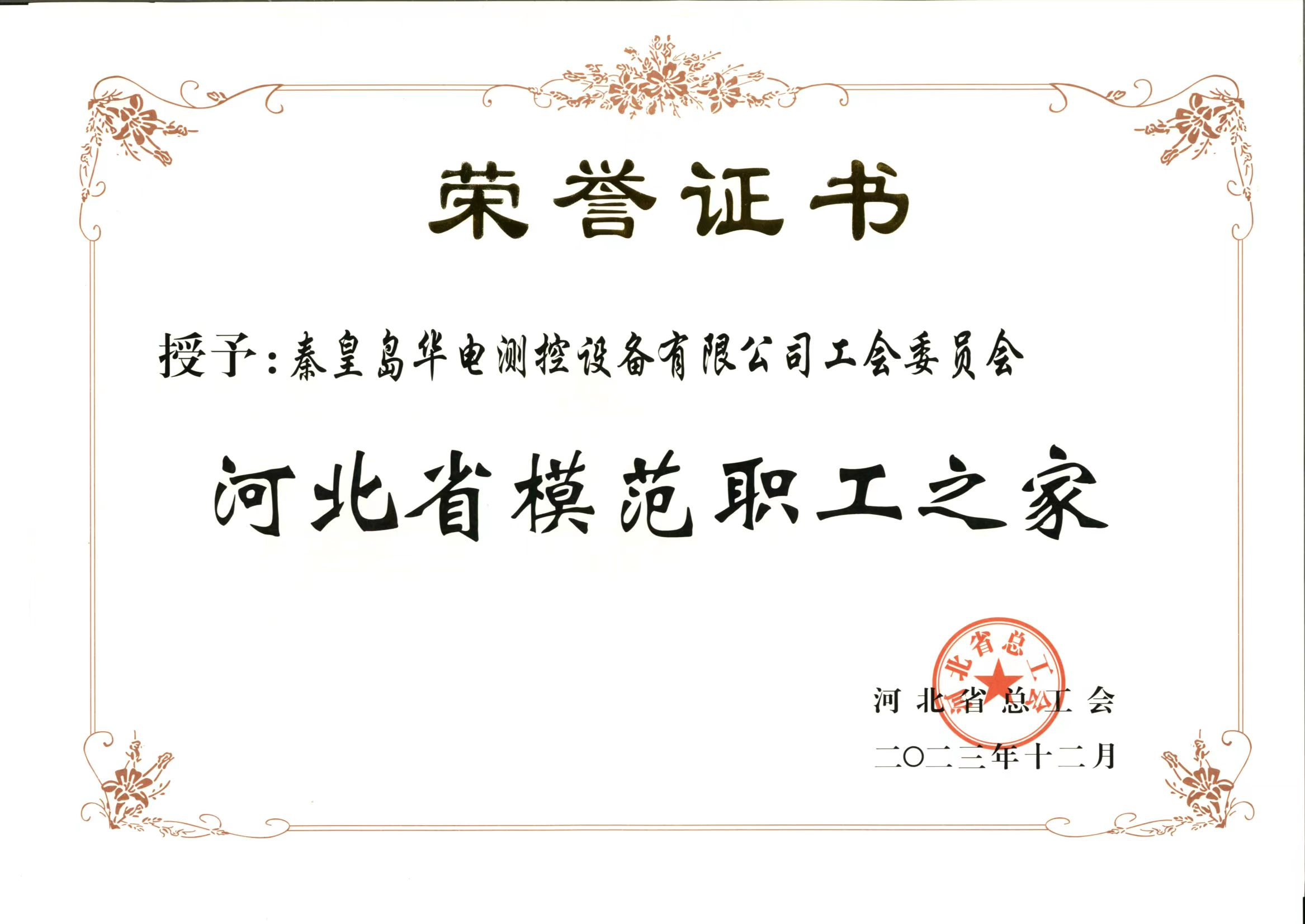 喜報:秦皇島華電測控設(shè)備有限公司工會委員會榮獲 河北省“模范職工之家”榮譽(yù)稱號