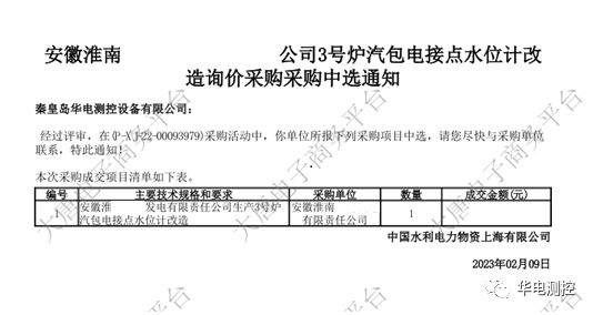 2023年2月9日,秦皇島華電測控設(shè)備有限公司產(chǎn)品高精度取樣電極傳感器成功中選安徽淮南某發(fā)電公司3號(hào)爐汽包電接點(diǎn)水位計(jì)改造項(xiàng)目。該公司早于2005年就已安裝我公司HDSC-GJT200More