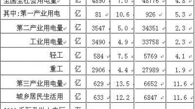 2017年1-3月份電力工業(yè)運(yùn)行簡況” 2017-04-211-3月份,全國電力供需總體寬松。全社會(huì)用電量同比增長,二產(chǎn)用電增速同比提高;輕重工業(yè)用電量均同比增長,制造業(yè)用電量增速同比提高;四大高載能行業(yè)用電量同比增長,化工用電量增速同比回落;發(fā)電裝機(jī)容量增速同比回落, 火More